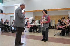 の贈呈や お祝いの言葉を贈り最後に、参加者全員でお祝いの