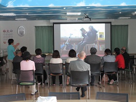 職員・Tさんの説明とともに「ふたばの1年・スライドショー」をご覧いただきました。
