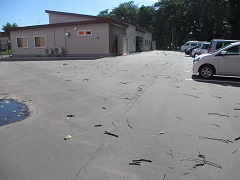 駐車場一帯が落ち葉ならぬ落ち枝でいっぱいになりました