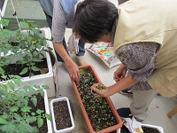 成長してきた野菜と花の植え替えをしました
