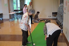 今回の交流会は、レク活動で、前半にスカットボールや 輪投げなどで体を動かした後、チラシを使ったパズルで