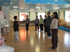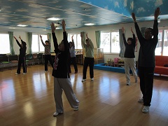 お話しの後、「練功十八法」と言う中国の健康体操で準備体操