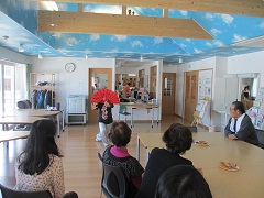 講習会後の茶話会では、大きな扇を使った「養生太極扇」と言う