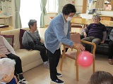 レクリエーションは2チーム対抗『玉入れゲーム』