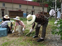 ホーや鎌、はさみを使い根気よく作業されていました。