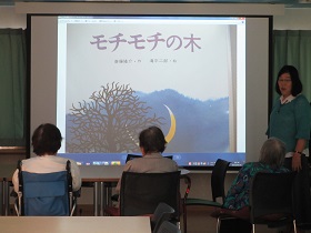 スクリーンを使っての朗読です