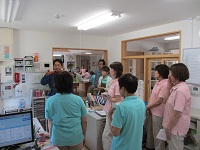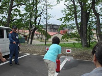その後、職員が消火器の使い方を実習し、