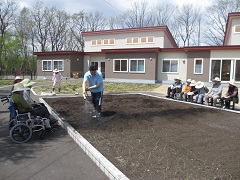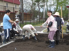 蒔き(投げ)終わったらイモをしっかりと踏みます