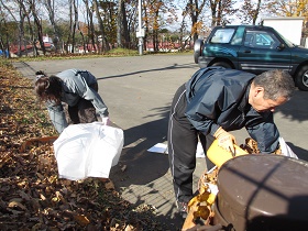 地域福祉係4名で枯葉集め