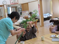 あっついですね いくらか風は入りますが、室内温度27℃でした。 やっと夏らしくなってきましたね 今日のふたばの午前中です 七夕の笹を組立て中 ふたりで相談しながら作業をしていました。 たのしそう そのおとなりではスケッチ中 いくつも色を重ねてきれいに描かれていました。 貼り絵を楽しんでいる方も 色遣いが涼しそうでこちらもきれいです ゆっくりソファでくつろいでいる方、 外に出て日陰で涼んでいる方、 それぞれの過ごし方を楽しむ ふたばのひとときをお伝えしました では