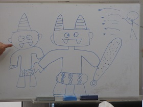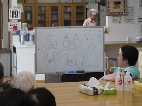 T職員が「〇〇さんおえかきですよ」出題中