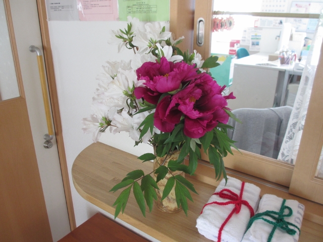利用者の方が作られた花瓶に花が生けられていました