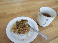 おやつのお好み焼きは、千切りにしたじゃがいも入り